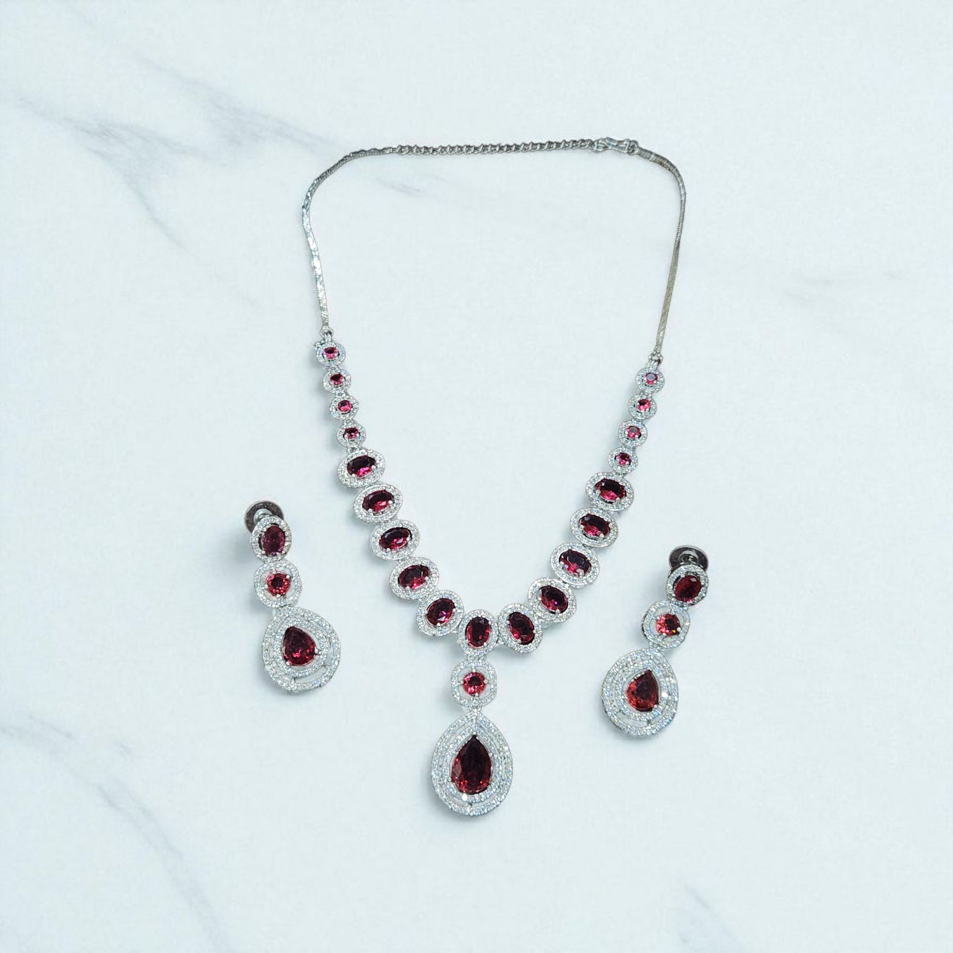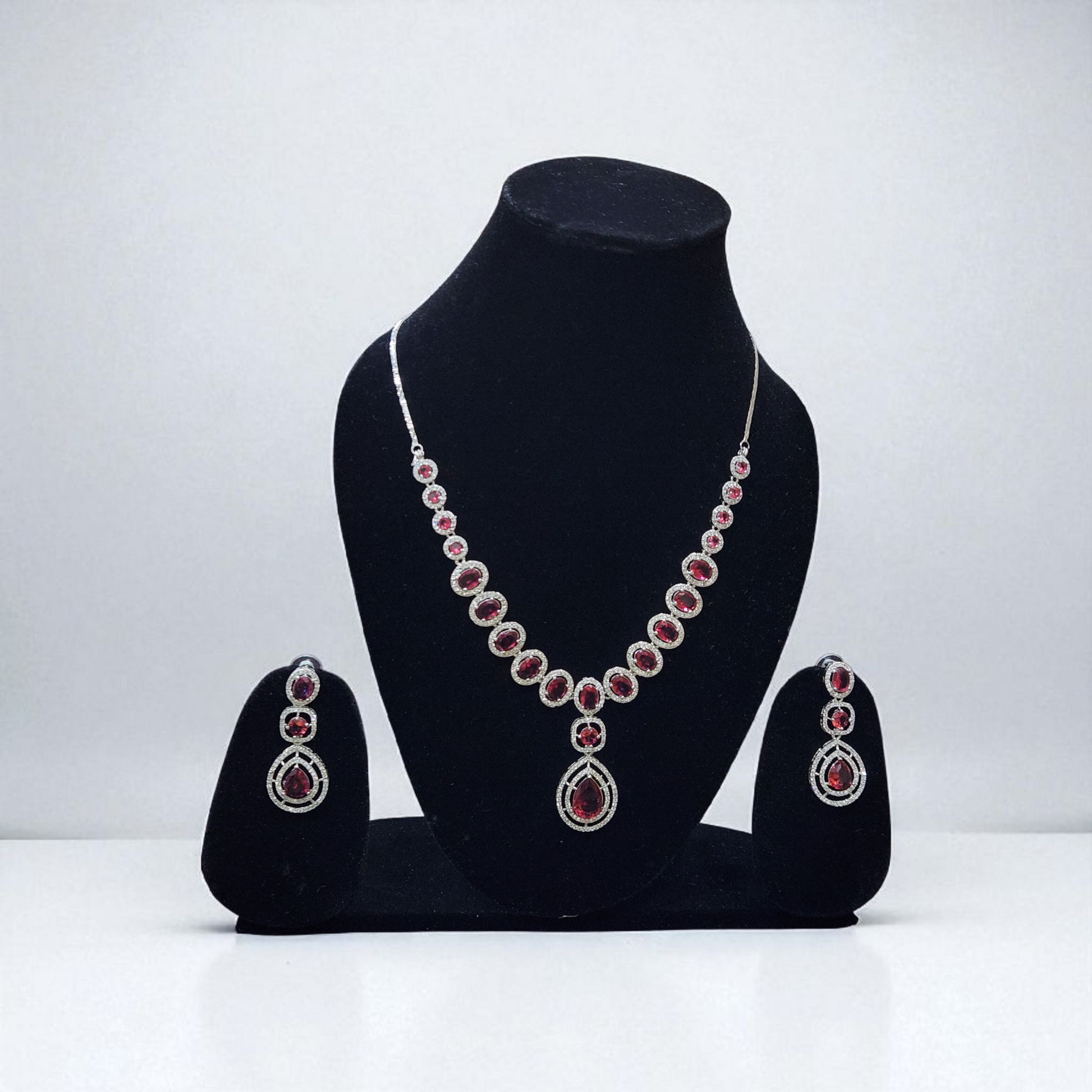American diamond Ruby Red Stone Necklace Set – Elegant Bridal & Party Jewellary