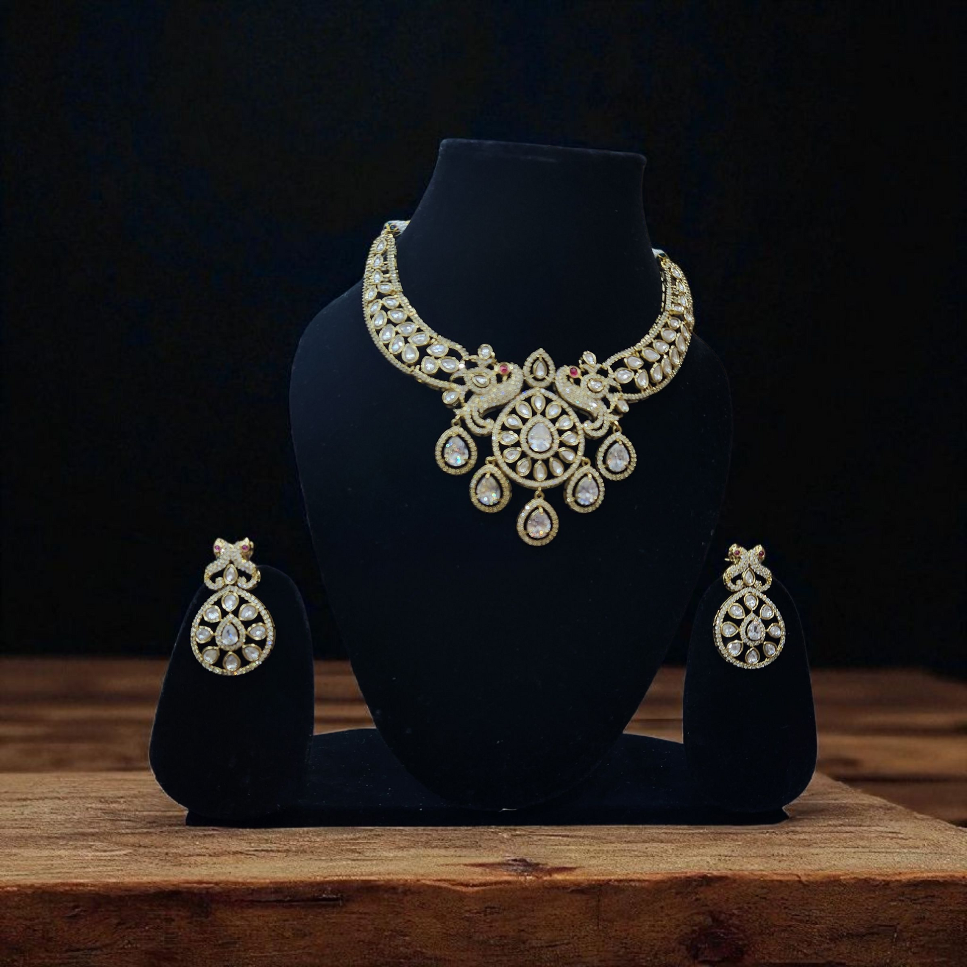 Kundan polki Peacock Bridal Necklace Set – Gold Plated with Earrings